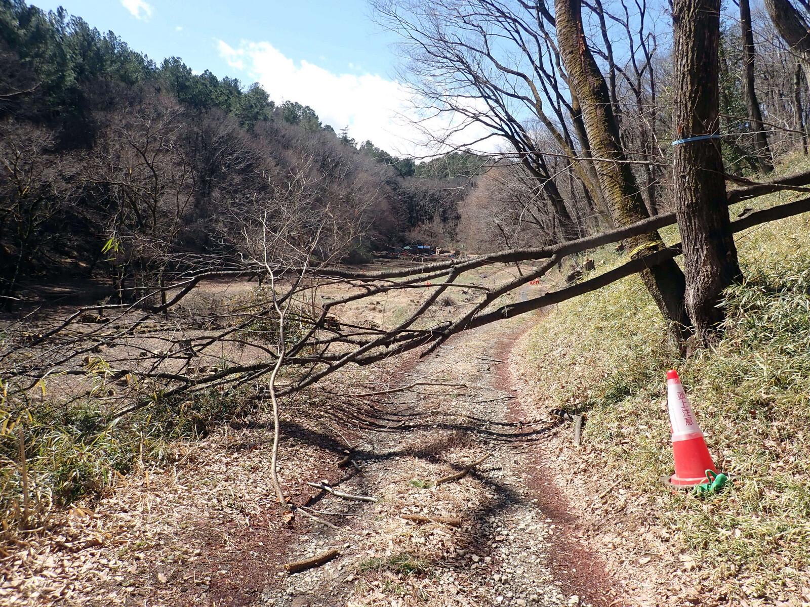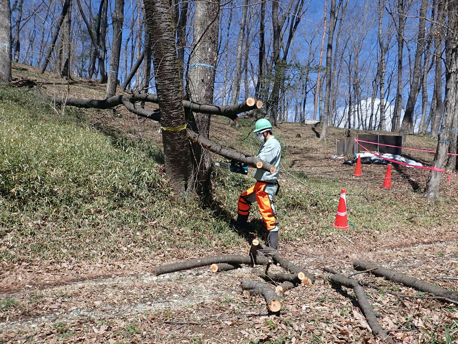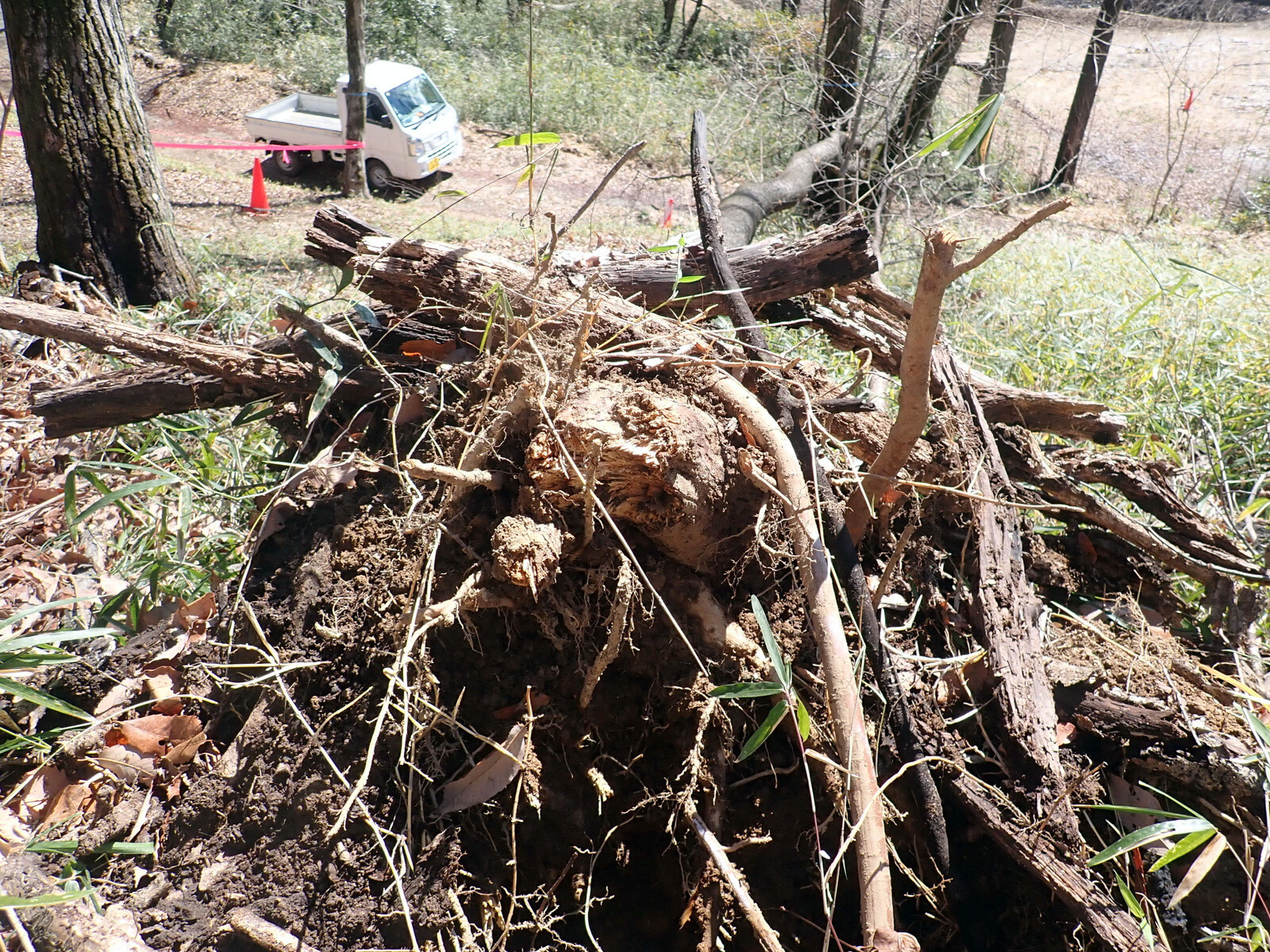 市民の森の作業道に倒伏したヤマザクラがありましたが、公園のパトロールにきていた松下さんがチェンソーでクルマが通れるようにしてくれました。ありがとうございました。