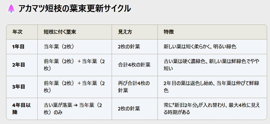・アカマツ短枝の葉束更新サイクル