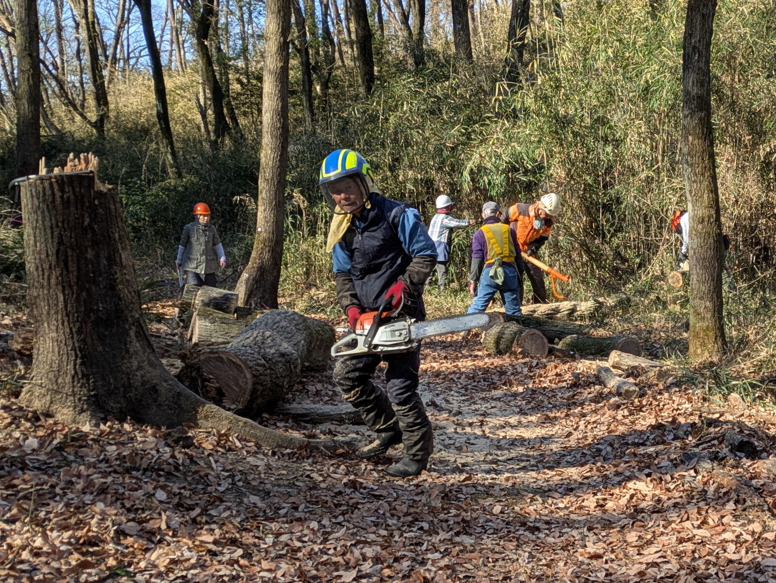 谷の道付近の枯死木の伐採を始めました。今日は№32・33・34です。