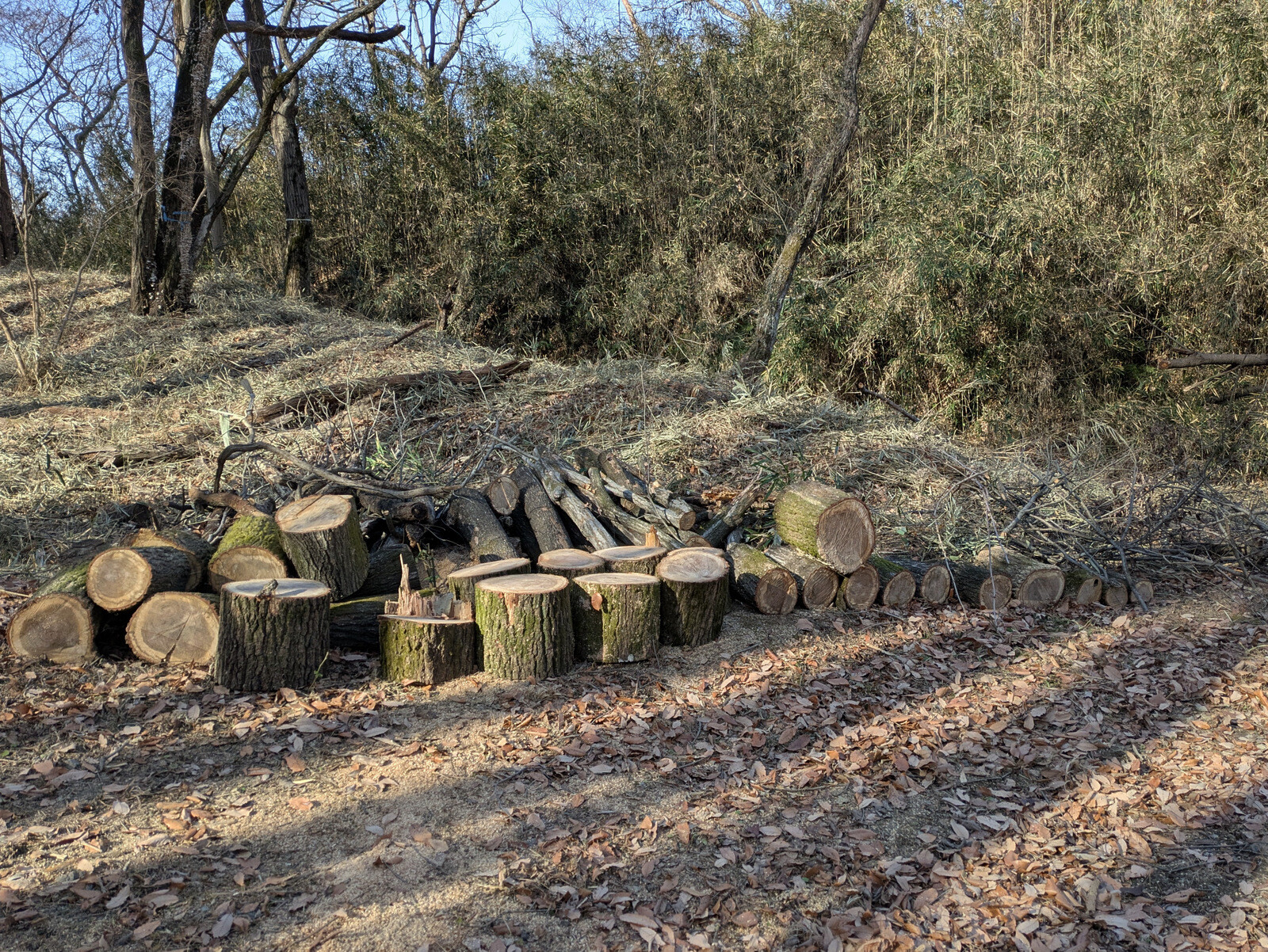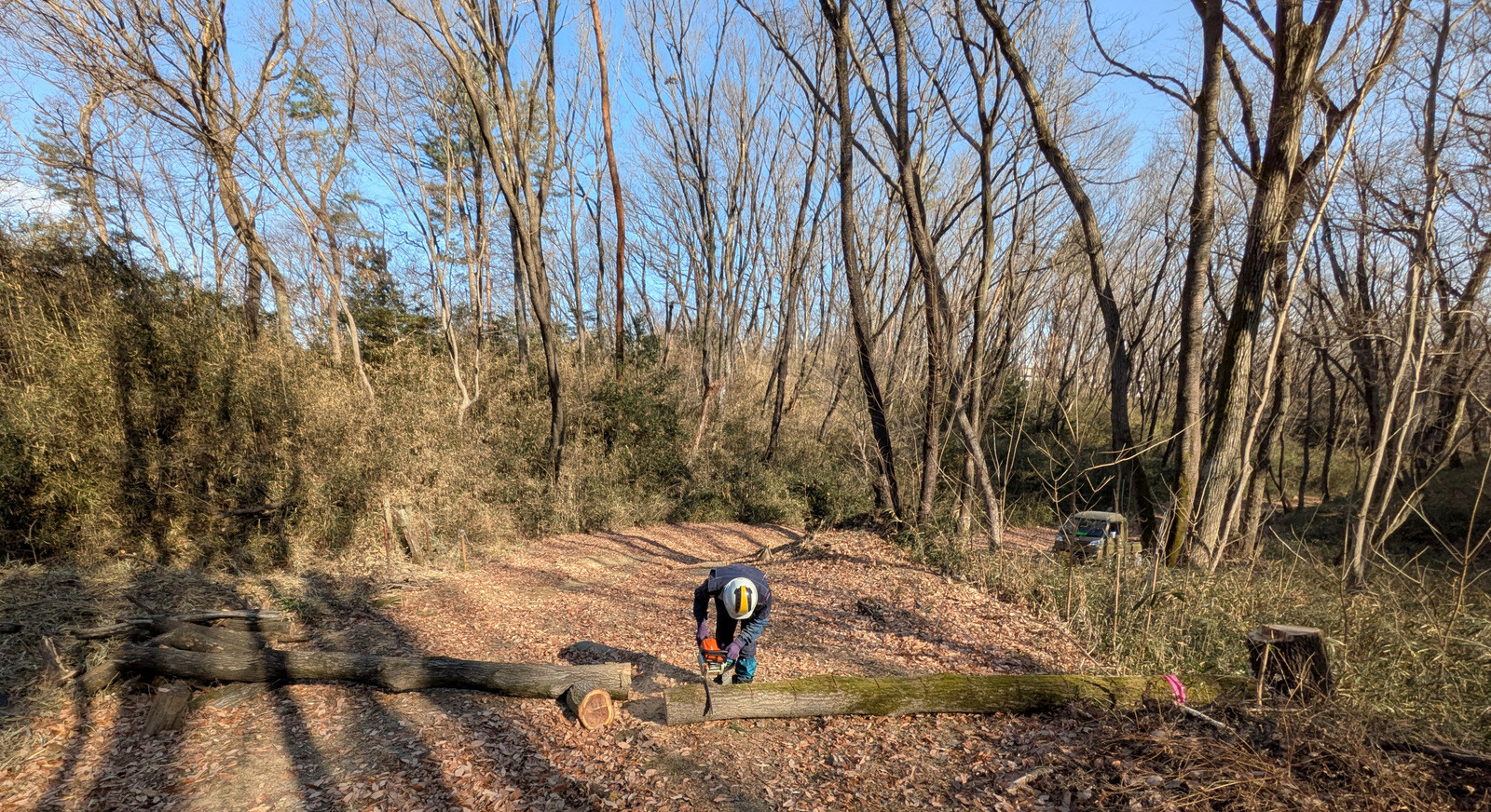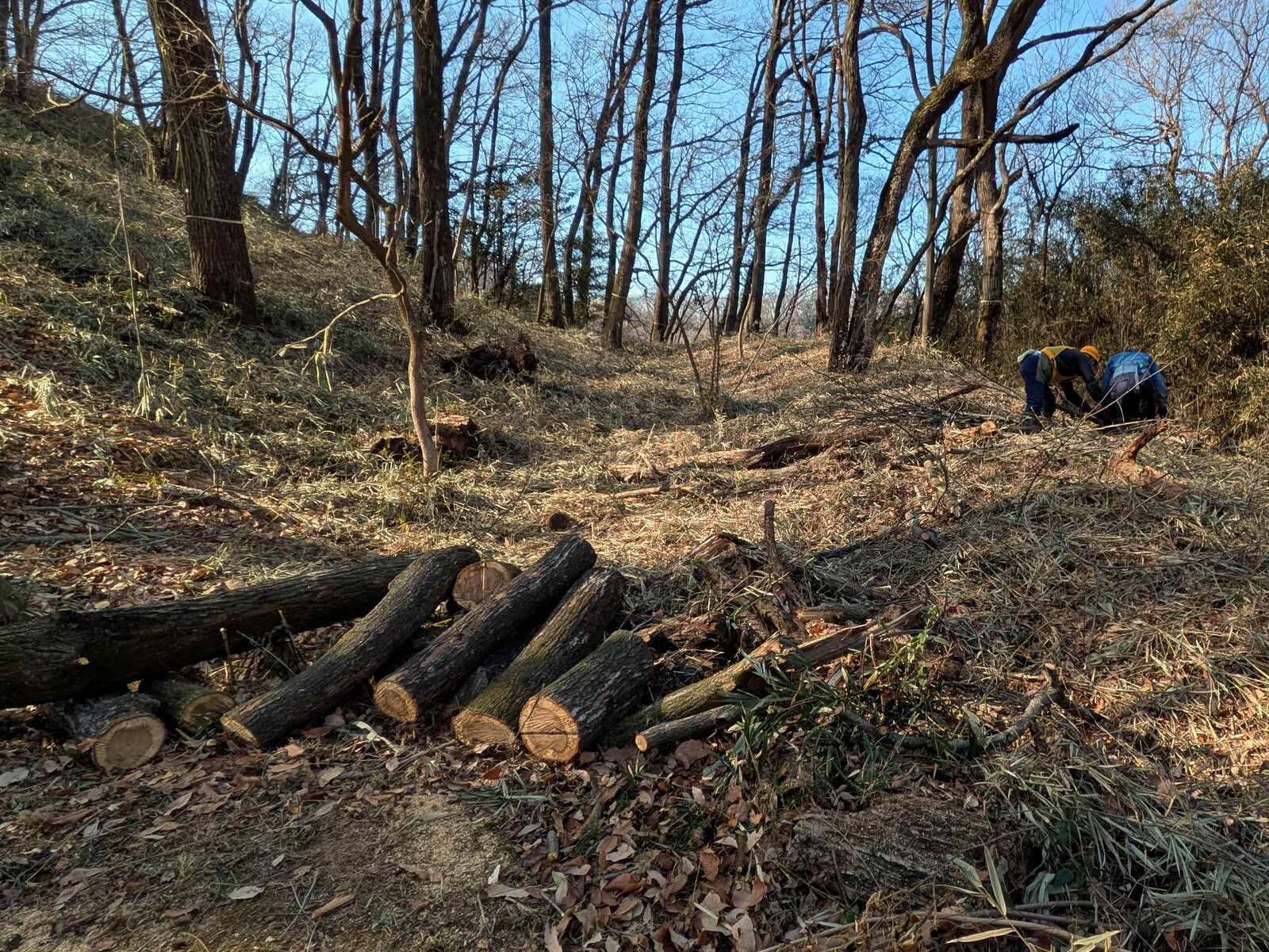 IWADONO Sundays 参加者は江原さん、金子さん、木谷さん、鳥取さん、新倉さん、丸山さん、鷲巣さん、Hikizineの8名。ナラ枯れ枯死木を2本伐採しました。