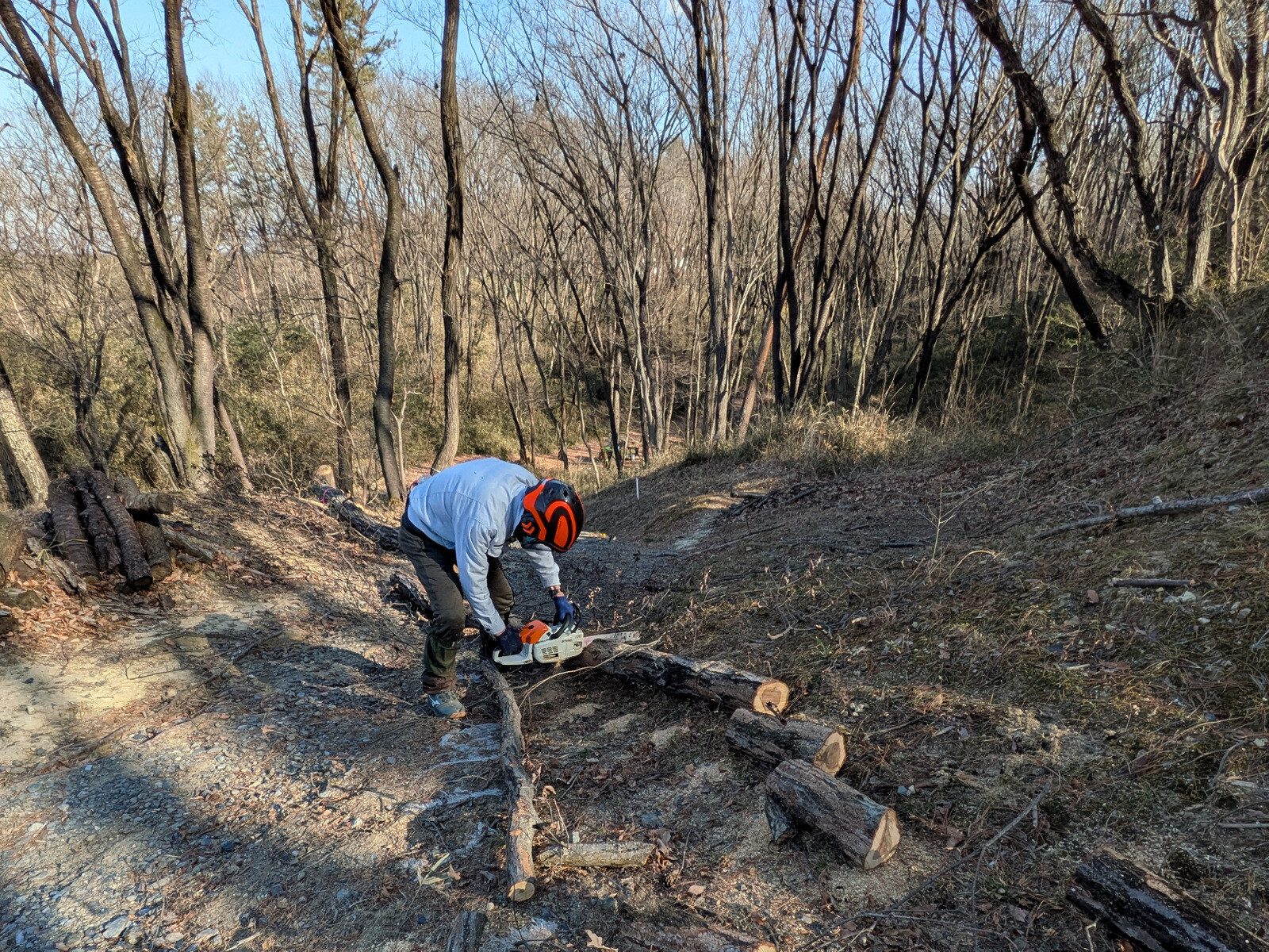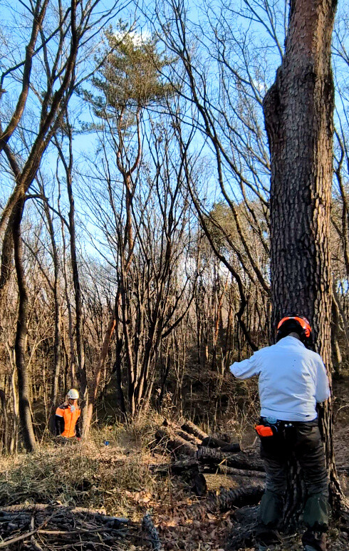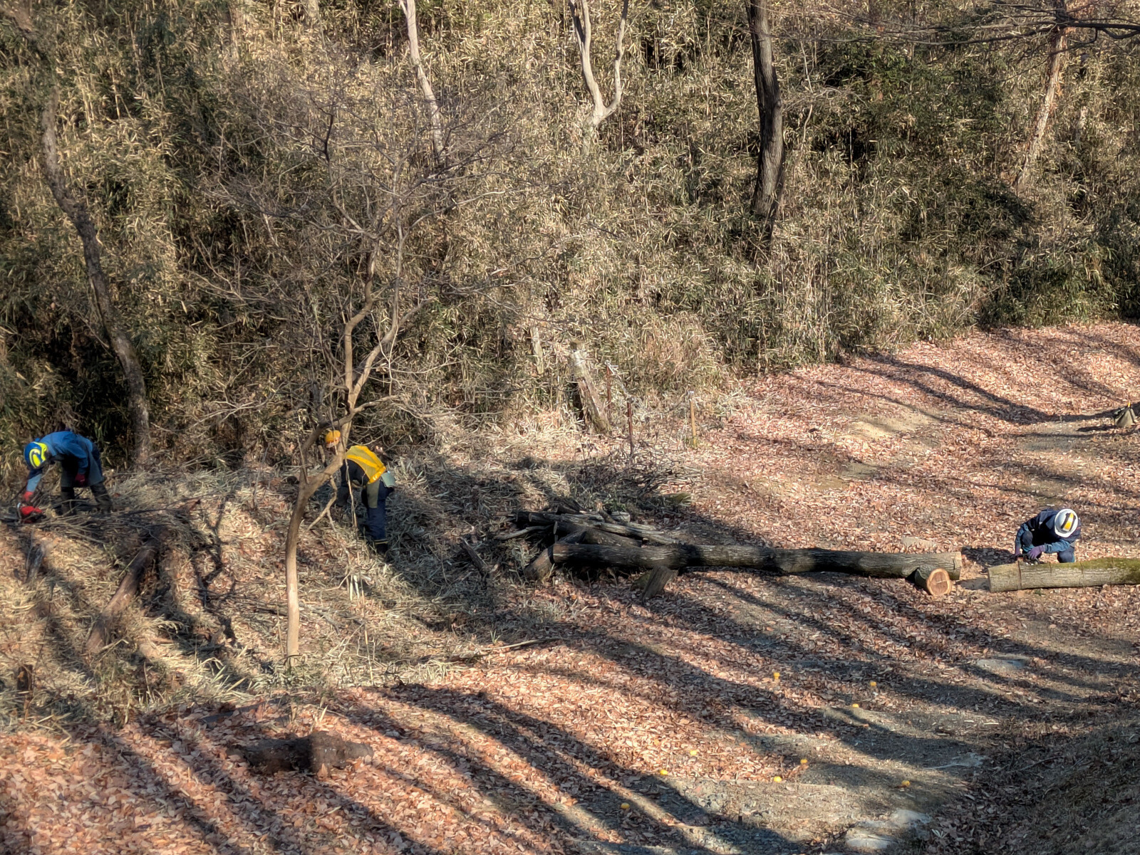 IWADONO Sundays 参加者は江原さん、金子さん、木谷さん、鳥取さん、新倉さん、丸山さん、鷲巣さん、Hikizineの8名。ナラ枯れ枯死木を2本伐採しました。