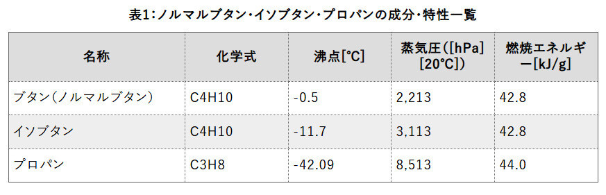 ブタン・イソブタン・プロパンの沸点の違いと気温