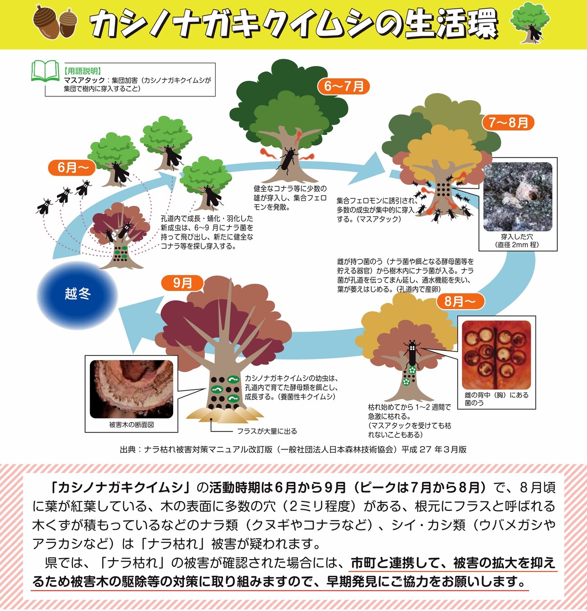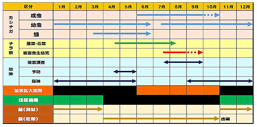 森林病害虫等防除法(1950年法律第53号)による法定害虫で県市町が連携して防除。
