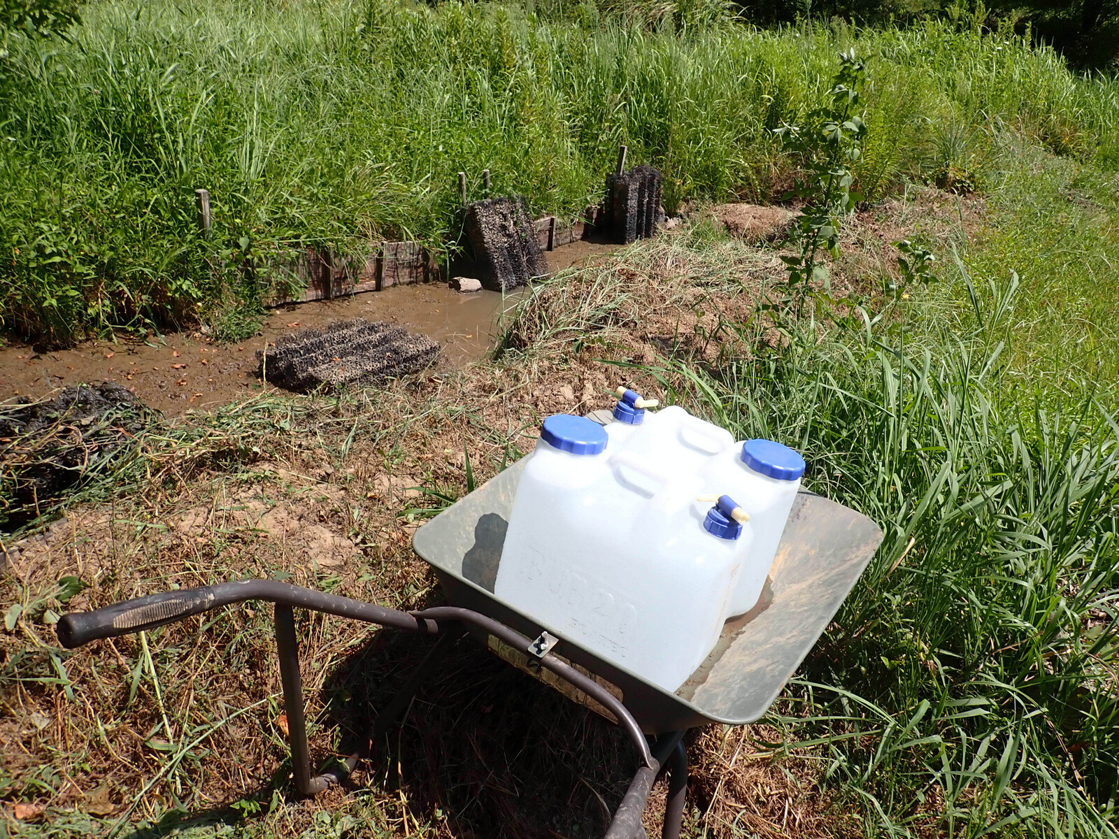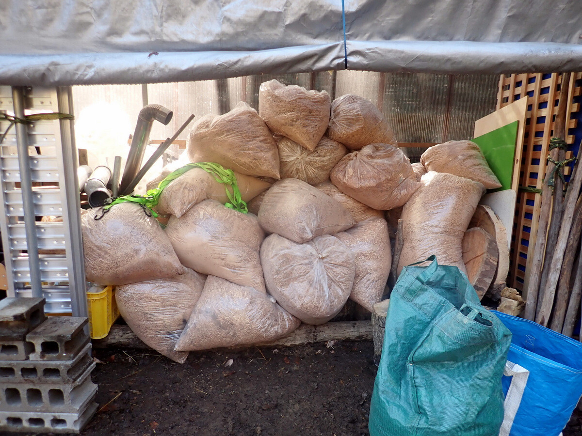 『薪ストーブライフ』42号(→ナラ枯れ文献⑤『薪ストーブライフ』42号 2021年9月5日記事)の「ナラ枯れから樹木を守ろう」のページに「カシナガは針葉樹が嫌い」という見出しがあったのを思いだして、軽トラに積んで一緒に持ち帰りました。京都・大覚寺の御神木のスダジイの根元に袋詰めしたヒノキのペレットを設置してカシナガの穿入を防いでいる写真が掲載されています。クスノキは材から樟脳が採れる香木です。クスノキは常緑、単葉の広葉樹ですが、鱗状葉の針葉樹・ヒノキの匂いが嫌いならクスノキはもっと嫌いなのではと期待しましたが、『森林防疫』63巻2号(2014年3月)に掲載されている小林正秀・吉井優「ブナ科樹木萎凋病(ナラ枯れ)の防除法」には、「京都府立植物園では市販の樟脳が幹に設置されたが、効果は得られなかった」、「ヒノキの木屑を幹に設置すると2週間程度の忌避効果が認められた」、「このため、京都市内の社寺仏閣では、御神木などの貴重木に対してヒノキ木屑(生材から作成した約1㎝四方のチップ)を梱包した袋を2週間毎に幹に追加設置することが行われている」(4か~6頁)とあります。残念ですが、他の使い道を見つけます。