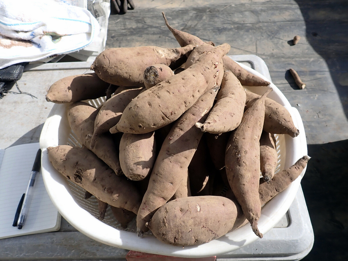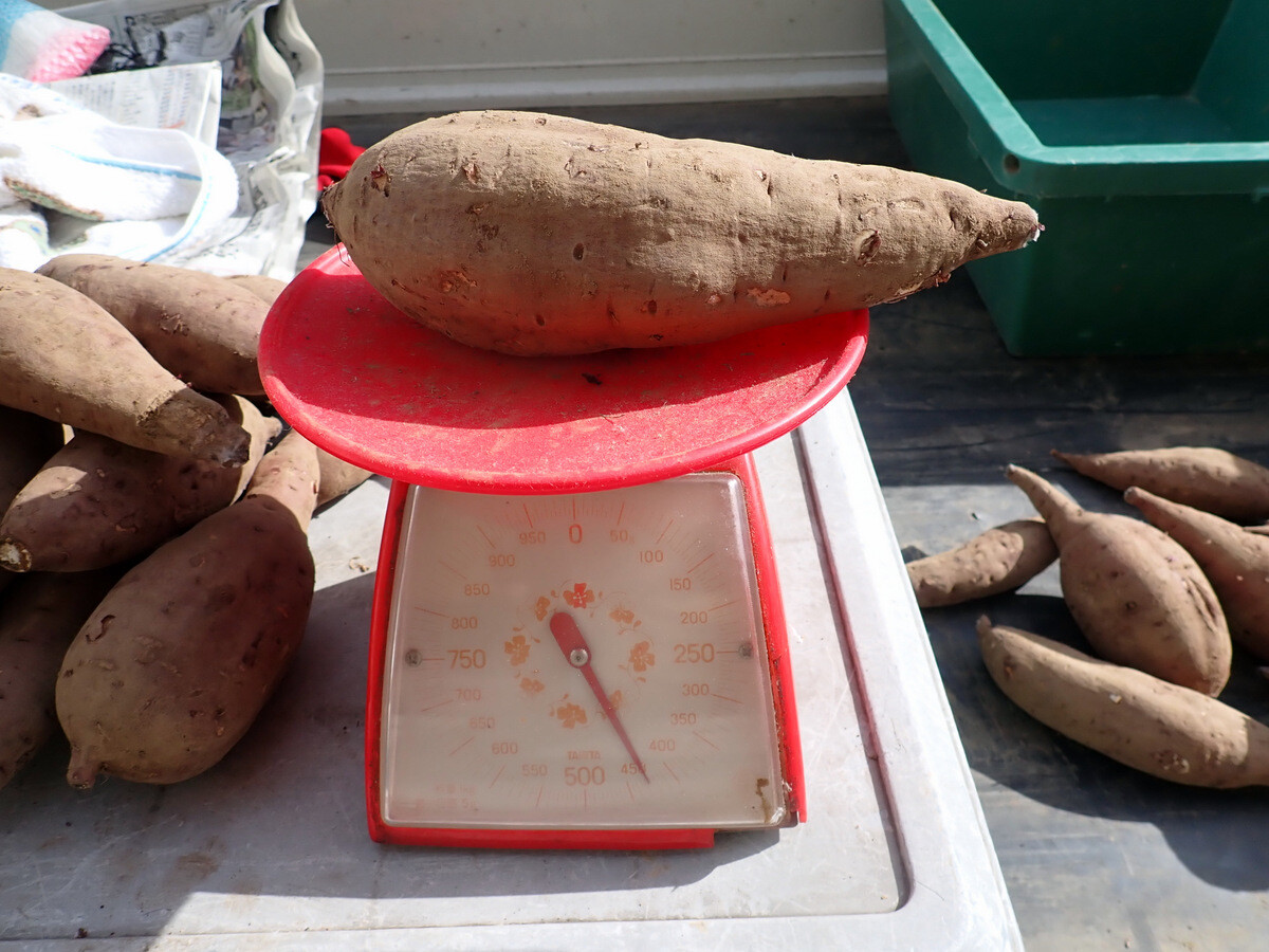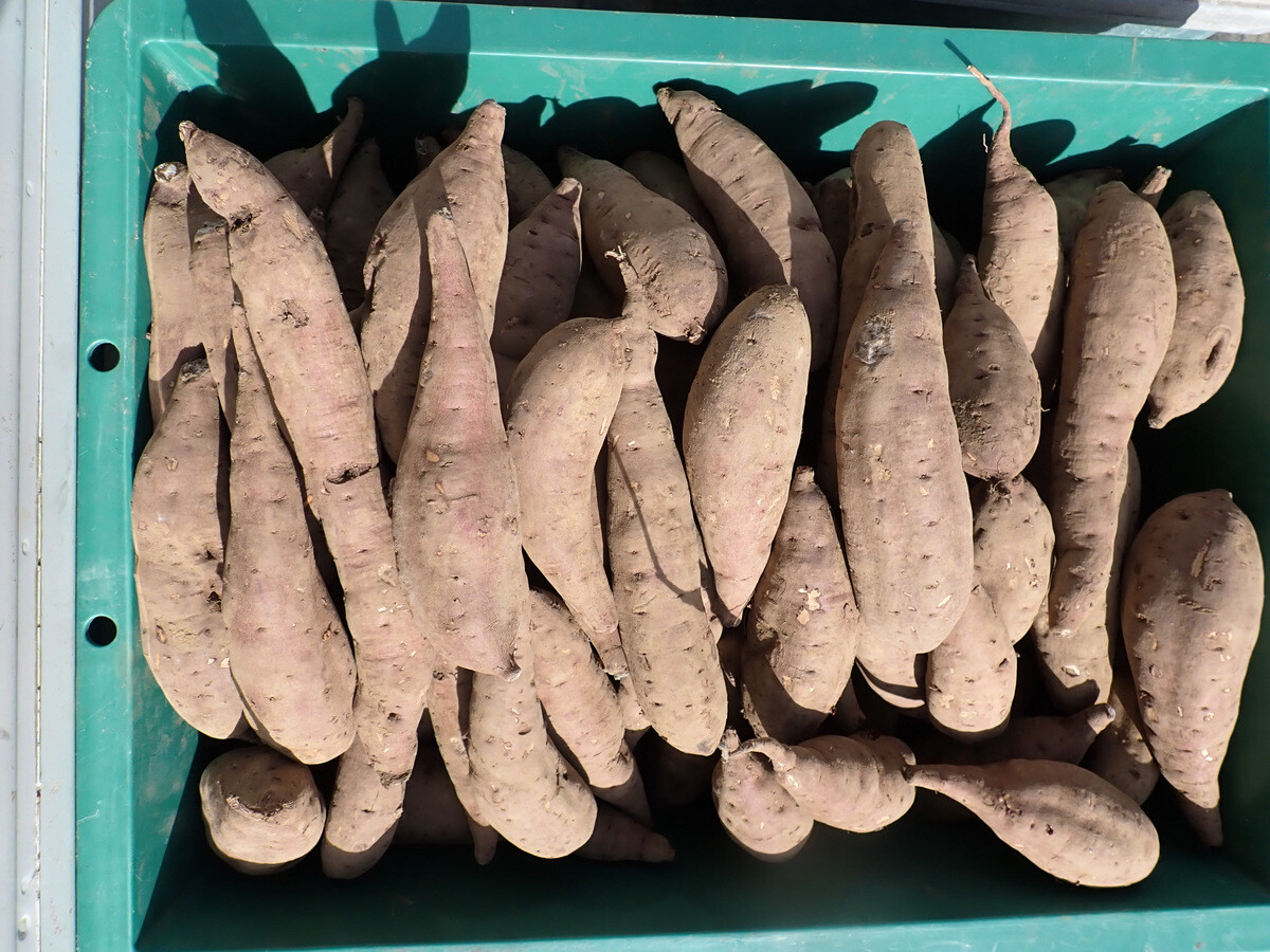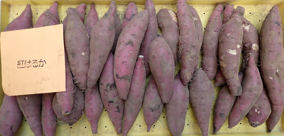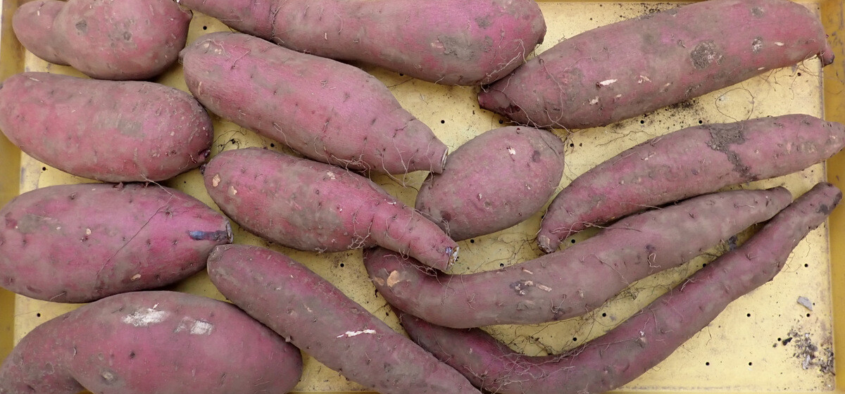 ※ハロウィンスウィートは三好アグリテック株式会社が育成したサツマイモの品種で2015年に品種登録されました。高知県生まれの高系14号から誕生した品種です。名称は「肉色が鮮やかなオレンジ色が特徴であるため、その色の特性から秋の収穫を祝う「ハロウィン」に因んで命名。包丁を芋の首の部分にいれると切り口が淡い橙色でかぼちゃを連想しました。