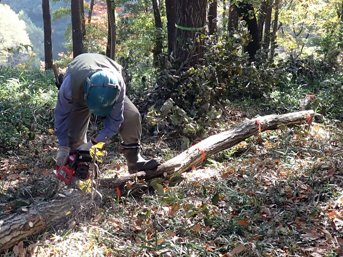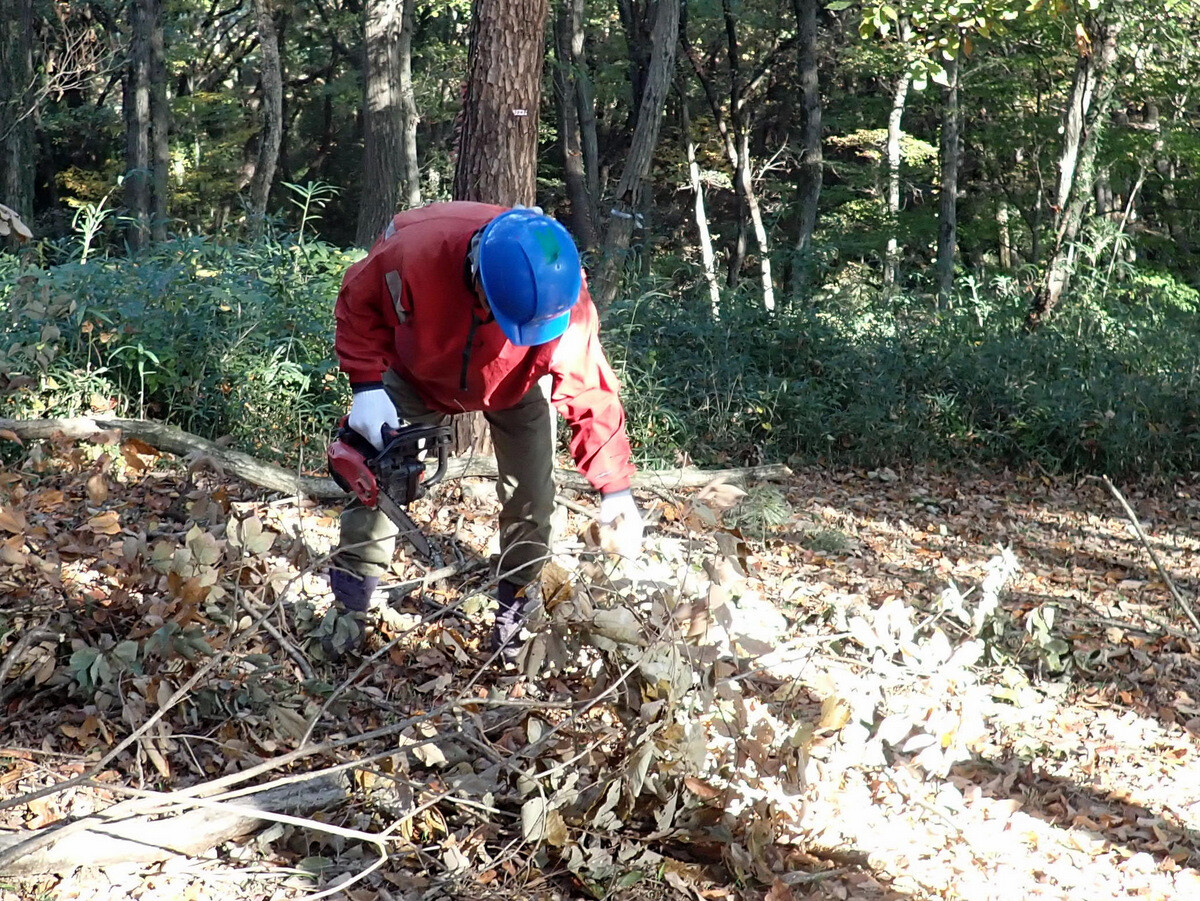 急傾斜地や足場の悪い場所でのチェーンソーや刈払機による作業