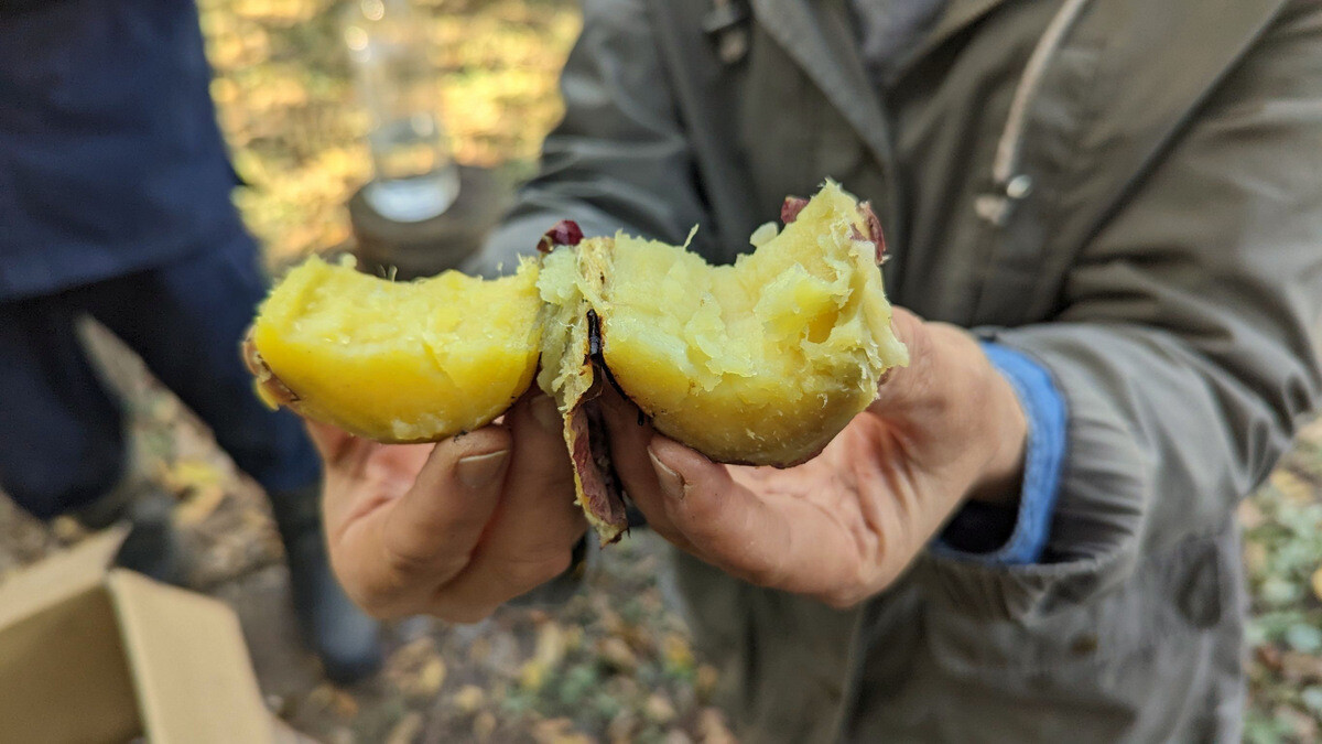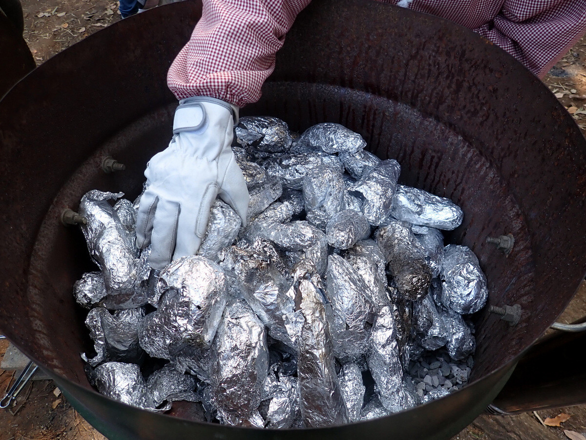 「石焼きいも」というと素人には難しそうに聞こえますが、使い古しのダメになったヤカンの中に小石を敷きつめ、さつまいもを乗せ、弱火で40分程焼くとホカホカの石焼きいもが出来上がります。おいしい焼きいもを作る最大のポイントは、アミラーゼという酵素が作用する70 ℃程度の温度を長時間維持することで、遠赤外線効果でじっくりと加熱される石焼きいもや焚き火の灰の下にさつまいもを入れて作る焼きいもは甘みが強くなります。