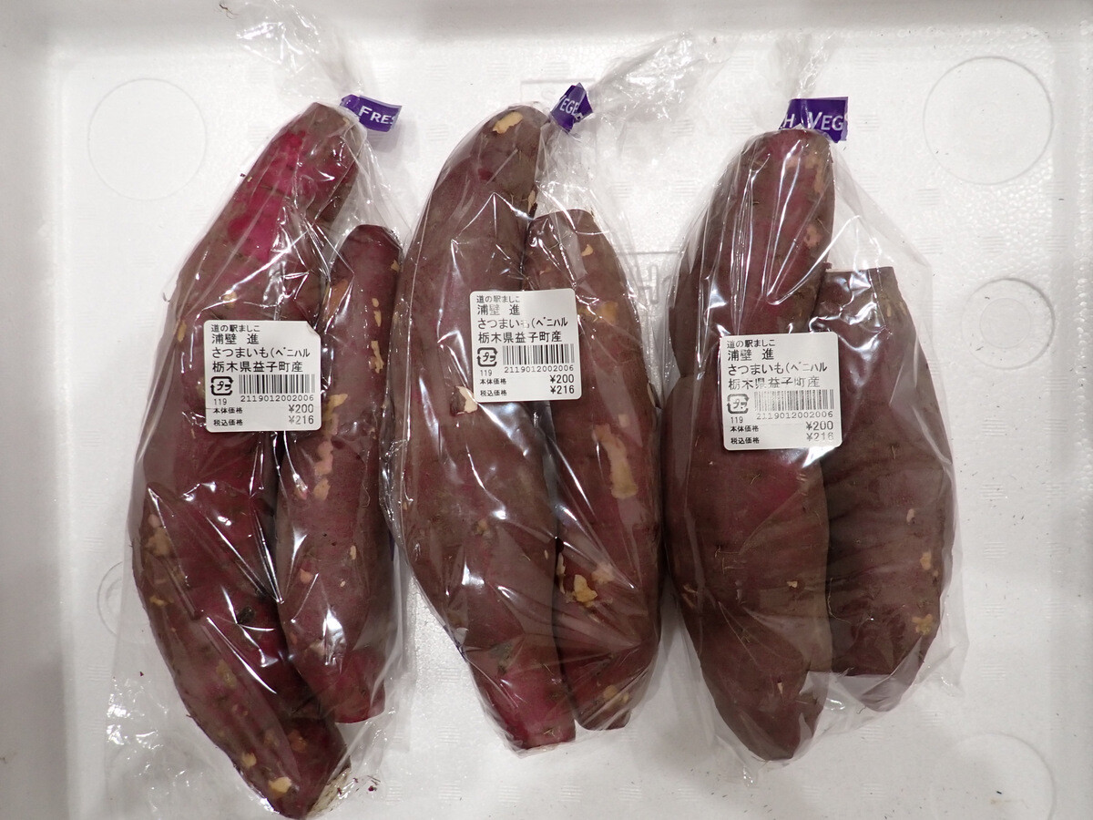 今日は、川越市の農家直売所と三芳町のいも街道で買った紅はるかを焼きました。