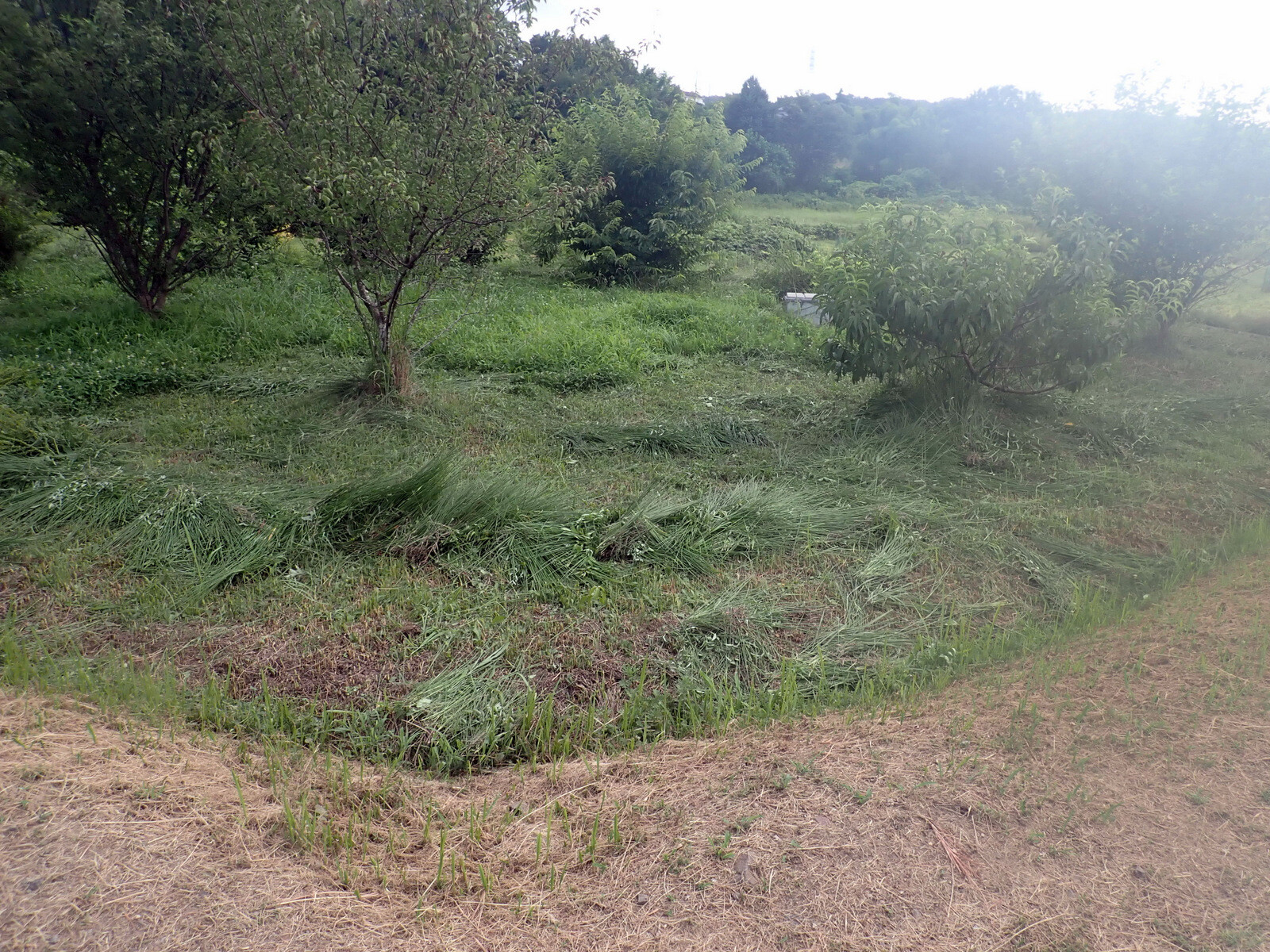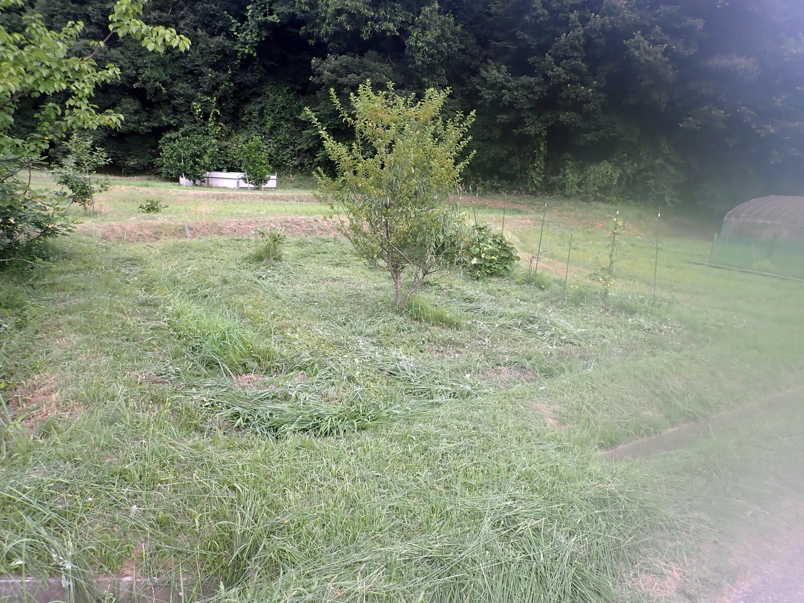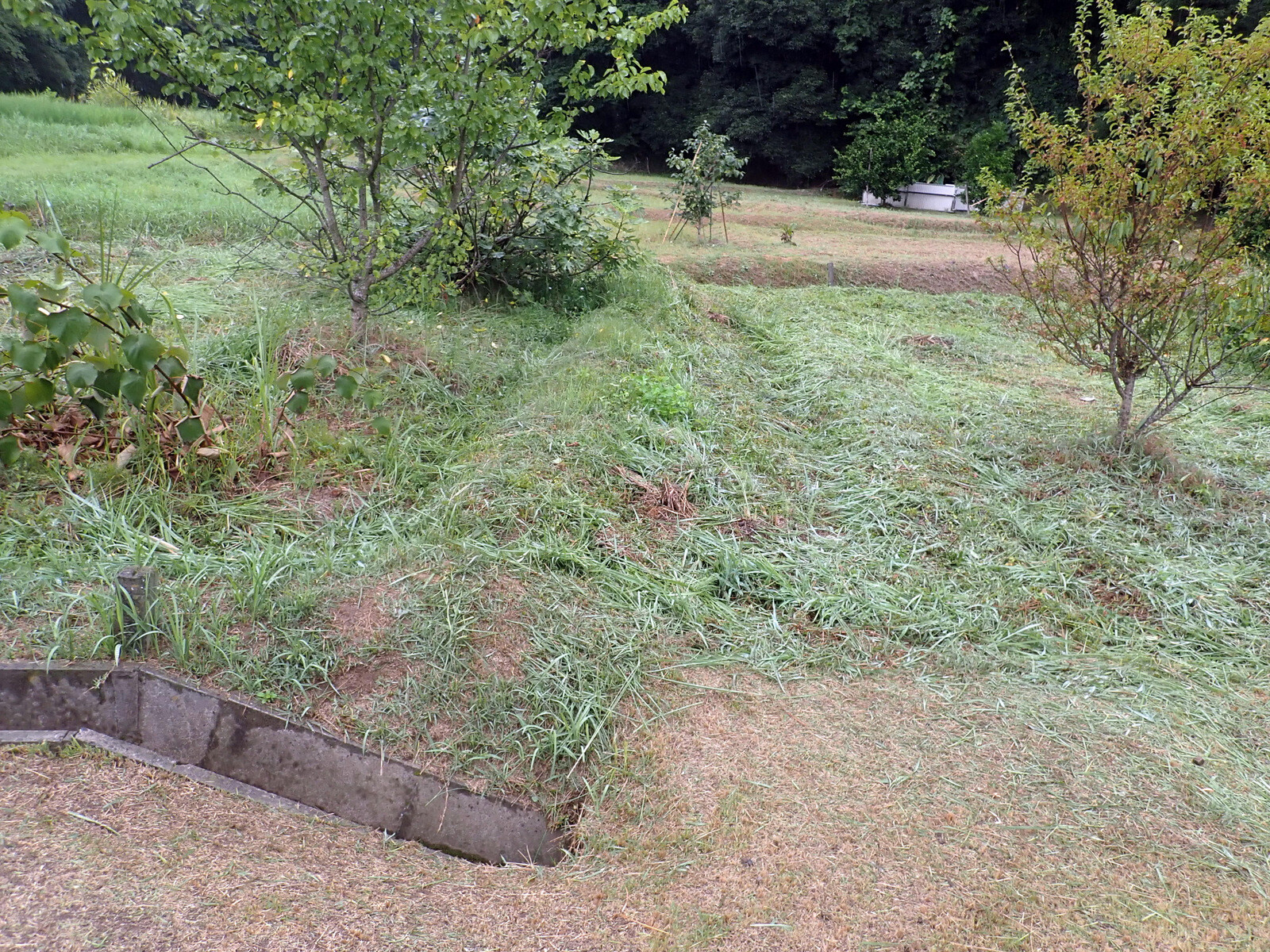 青木ノ入の学びの道と東側の果樹園の除草をスパイダーモアでしました。