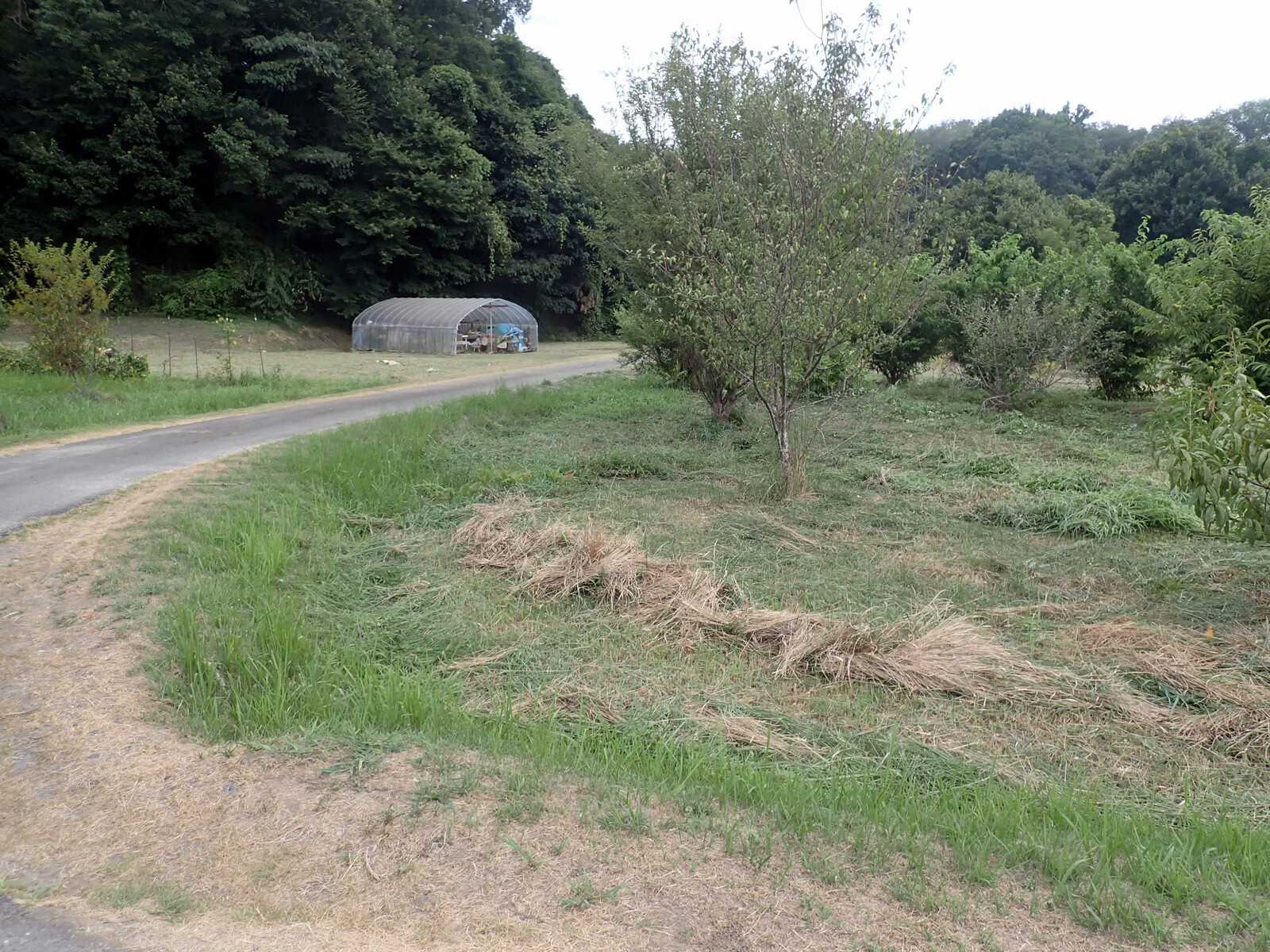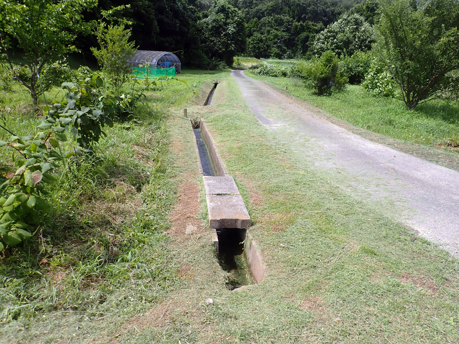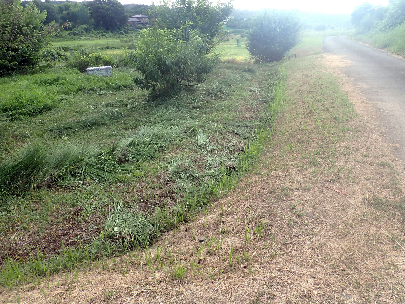 青木ノ入の果樹園の道路際とボッシュ林に向かう農道を除草しました。前回は4月10日です。