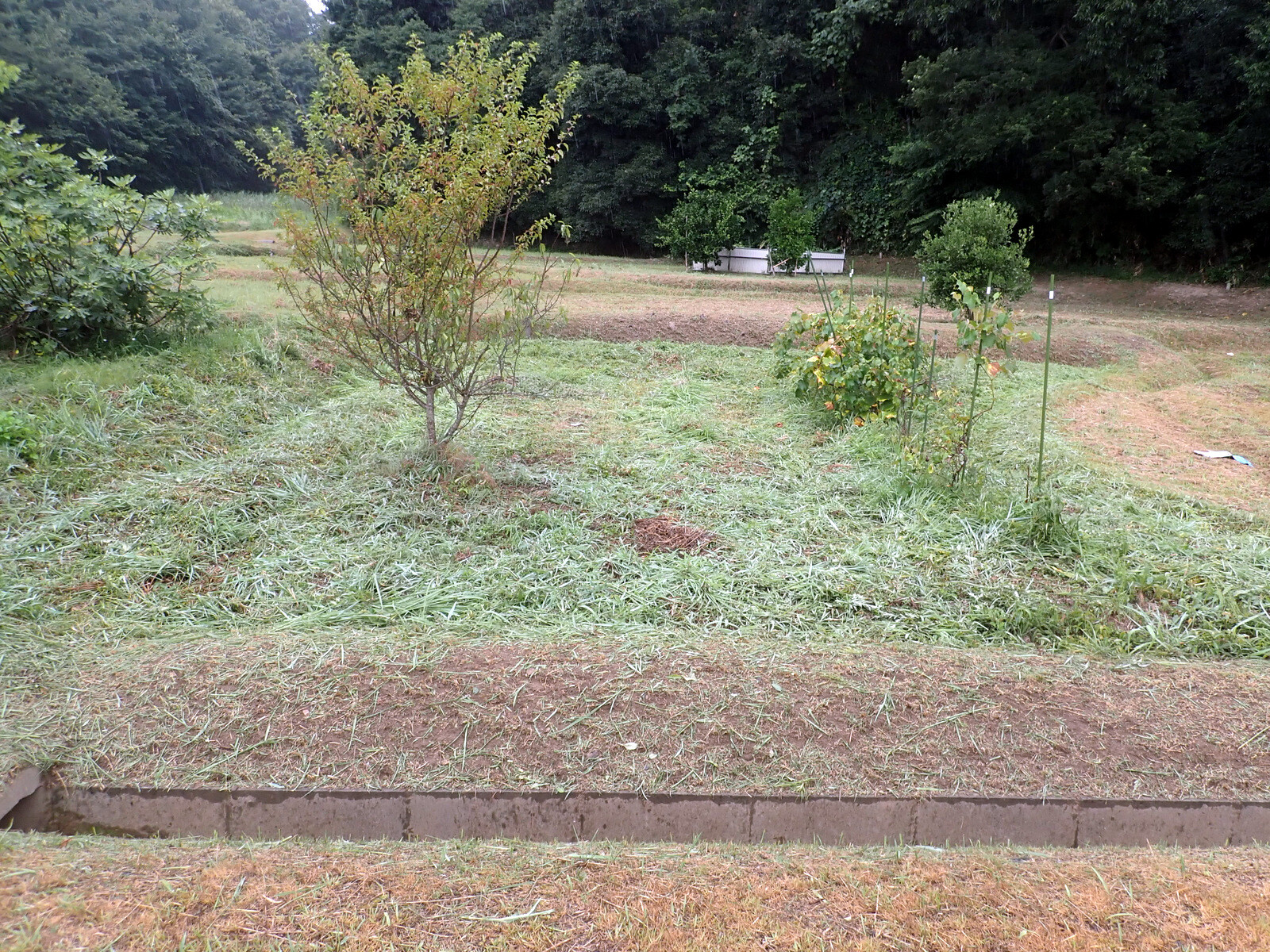 ヒメコウゾやブルーベリーがある区画は刈払機でします。