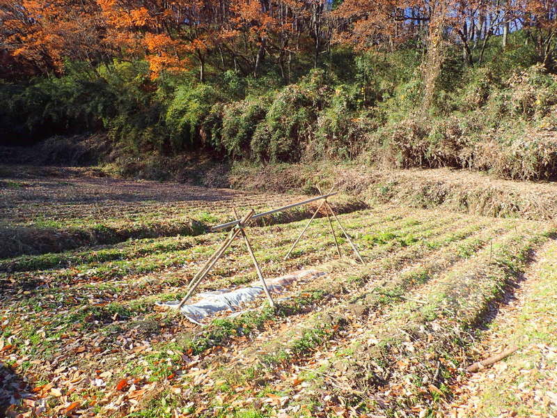 岩殿C地区の下の段の畑に丹波黒豆、行田在来青大豆をまきました。青大豆は、1月28・29日に珈琲工房まつざわで開かれていた埼玉県在来大豆フェスティバルで買ったはせがわ農園産です。
