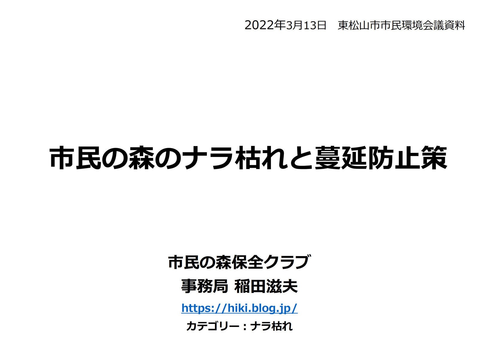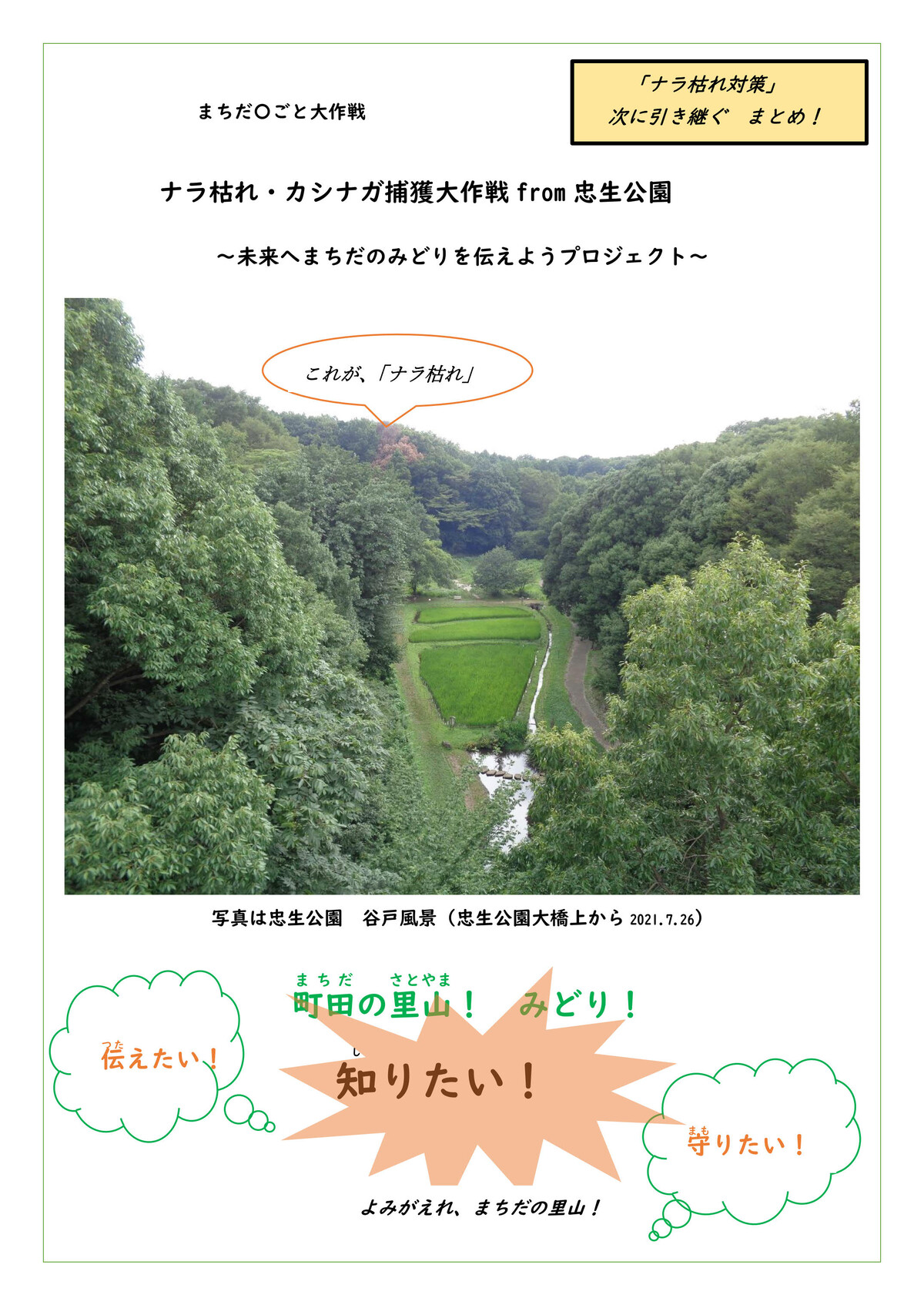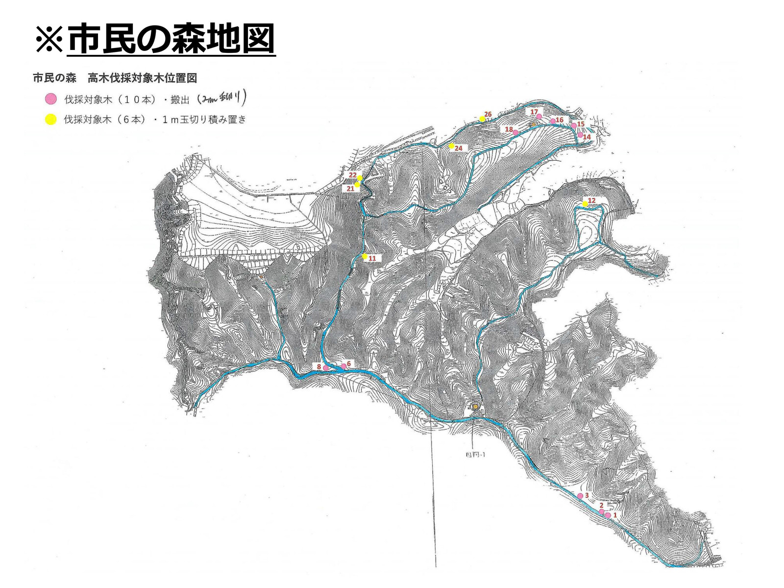 市民の森でのナラ枯れまん延を防止・ナラ枯れ防除を最優先活動目標とする。