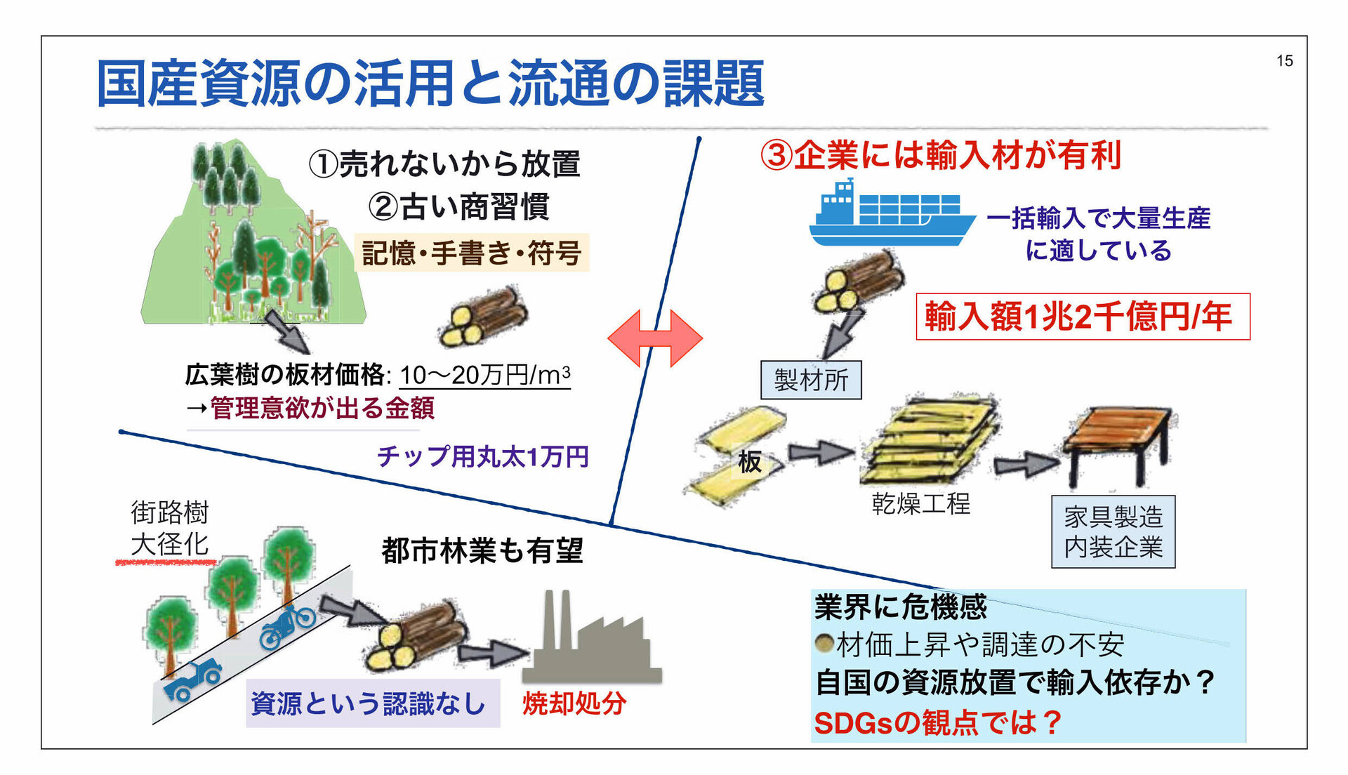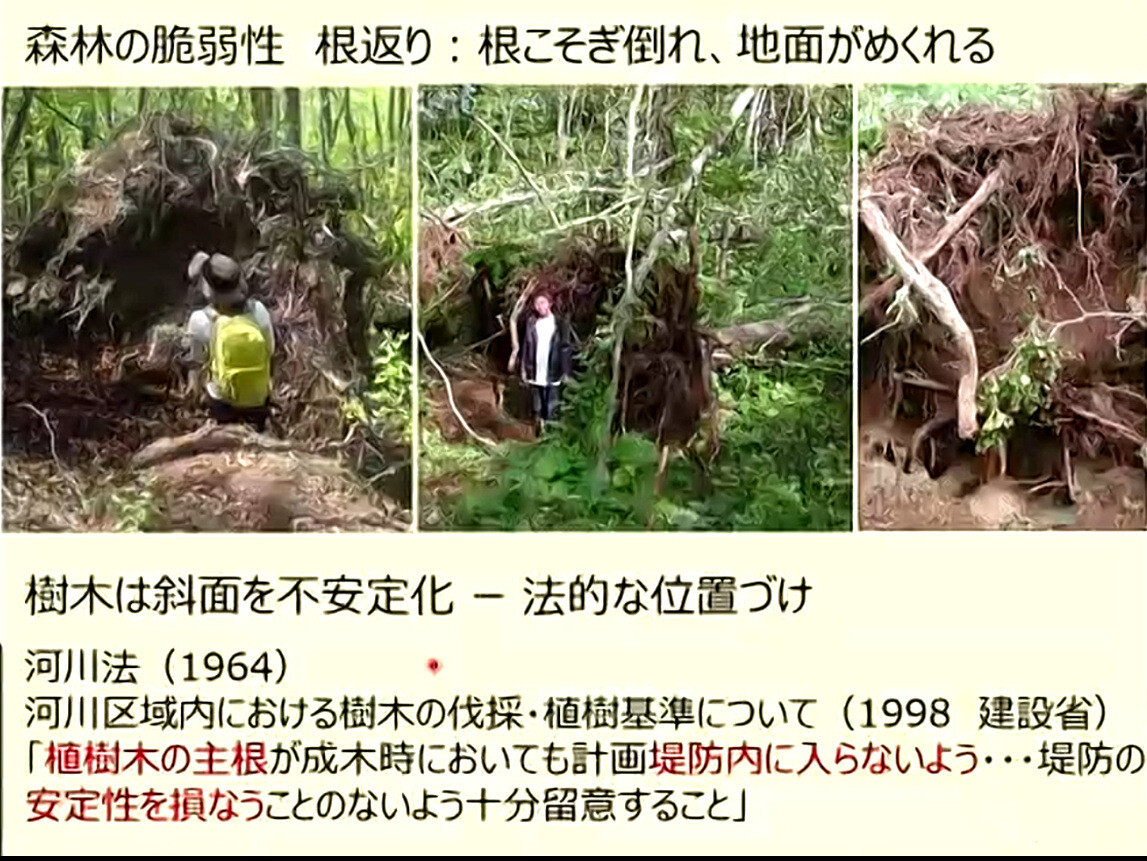樹木は斜面を不安定化(河川法、1964年)