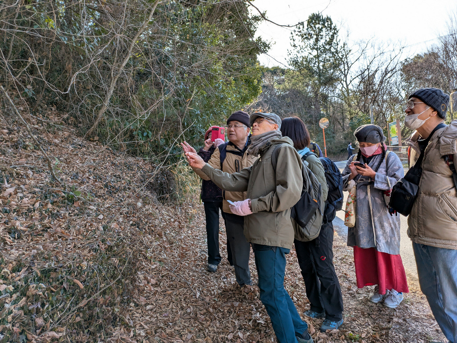 岩殿谷津田自然くらぶの自然観察会『新春の岩殿丘陵・谷津田を歩く 冬芽・ロゼット・冬越しの生きものたち』を物見山駐車場~見晴らしの丘~JAXA地球観測センター、入山谷津で実施しました。
