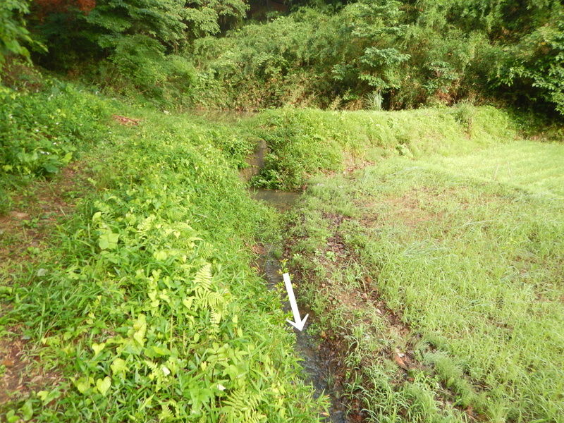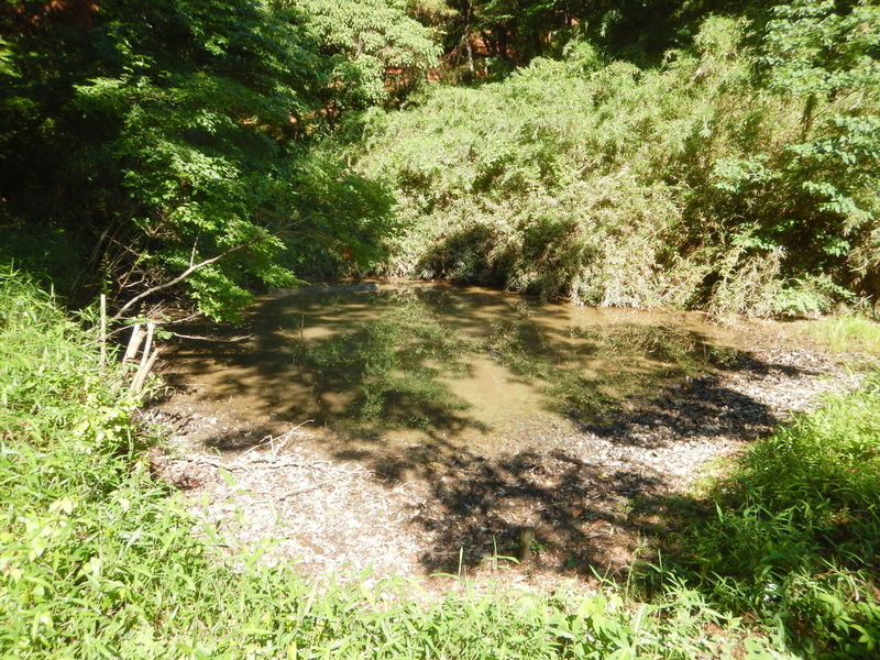 無名沼ロ号には水が溜まっていました。市民の森からの水が集まりやすい窪地にあるからでしょう。田んぼ沿いの水路からの水は入口を閉めているので入っていません。