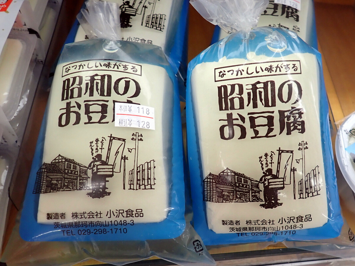 パッケージの「なつかしい味がする 昭和のお豆腐」に惹かれて手に取った豆腐です。2015年12月、17年1月にも買っています。小沢食品は1923年(大正12)創業です。ジョイフル本田に入っているジャパンミート(茨城県を中心に13店舗。2020年2月から持ち株会社JMホールディングスグループに移行)の千代田店で買いました。
