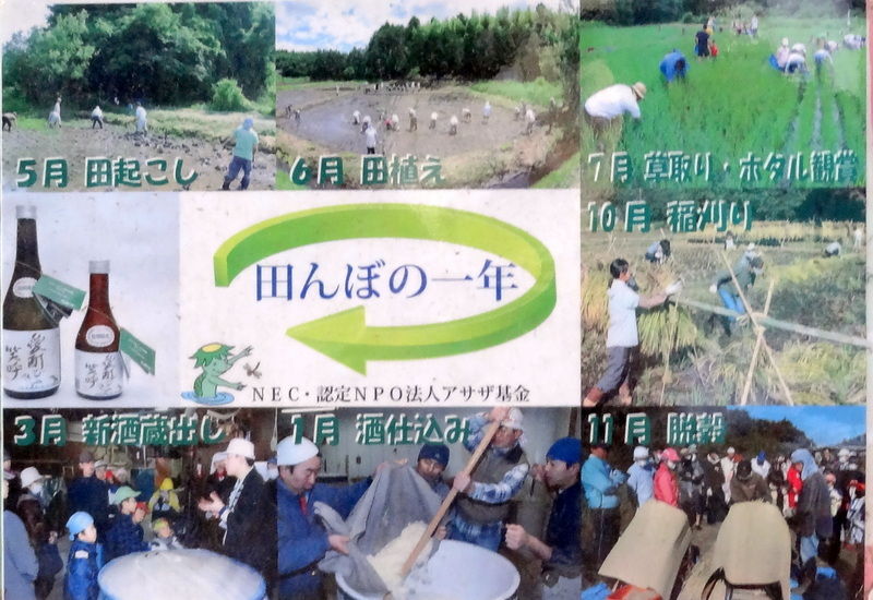 NEC グループは「人と地球にやさしい情報社会」の実現に向けて、その基盤作りのために全従業員の環境意識の向上を図っています。NPO法人アサザ基金さんとの 協働で開始した「NEC田んぼ作りプロジェクト」は、従業員が稲作からお酒作りまでを一年を通じて体験する自然体験参加型プログラムです。/従業員 が直接自然に触れ、その素晴らしさを感じ、収穫の悦びを分かち合うことによって「モノ作り」の原点を実感すると共に、NECが有する「IT・ネットワーク 技術」を活用して生態系観測や生物多様性保全に貢献する「生態系・生物多様性ソリューション」の開発・実証を目指しています。(→ http://jpn.nec.com/community/ja/environment/tanbo/index.html )