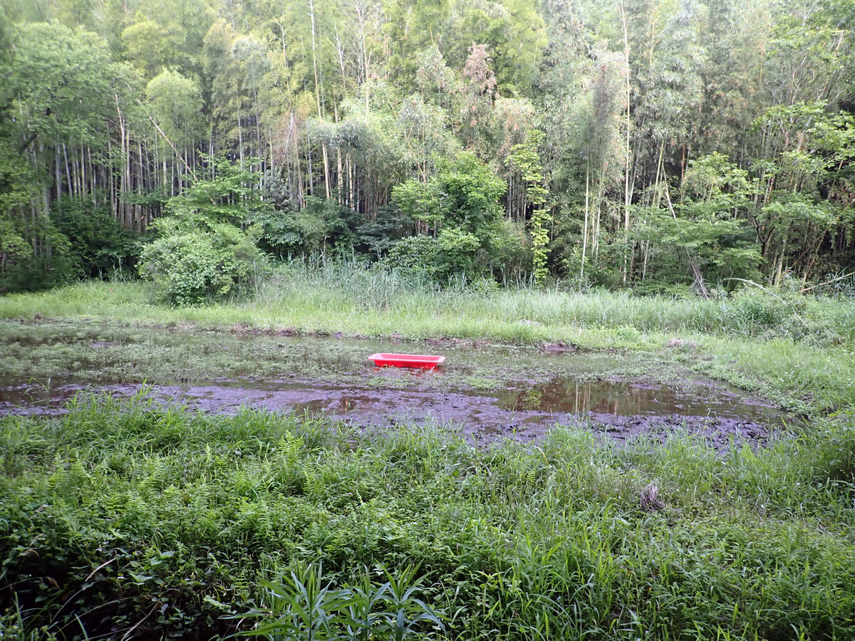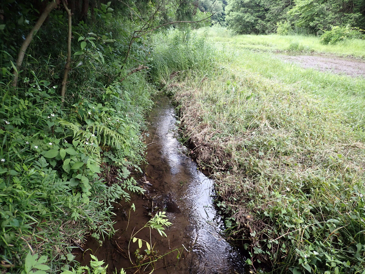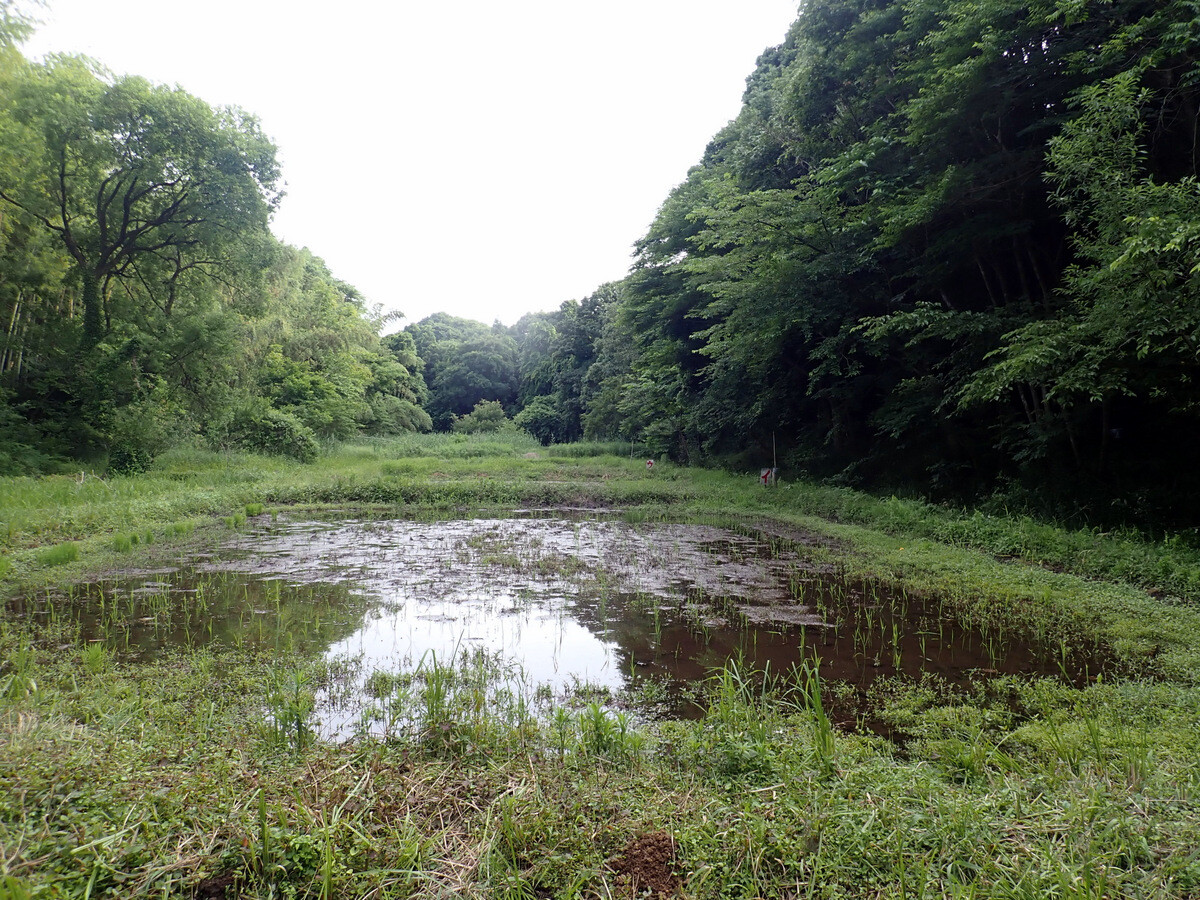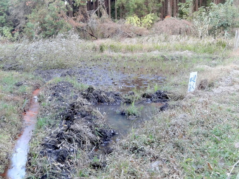 田んぼの用水は、2つのため池(北ノ入池、一杯池(いっぺいいけ))に湧き出る水を利用しているそうです。湧き水は少ない時でも毎分70リットル、年間3.7万トン以上の水量といいますから、岩殿に較べてその豊かさにおどろかされます。