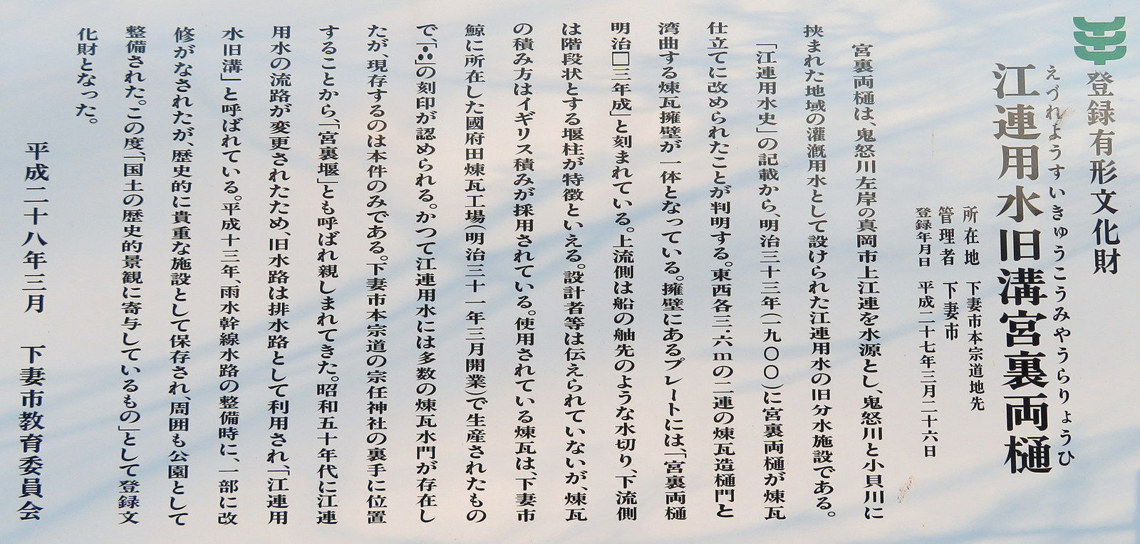 2015年3月に国の有形文化財に、16年10月に土木学会選奨土木遺産に登録されました。
