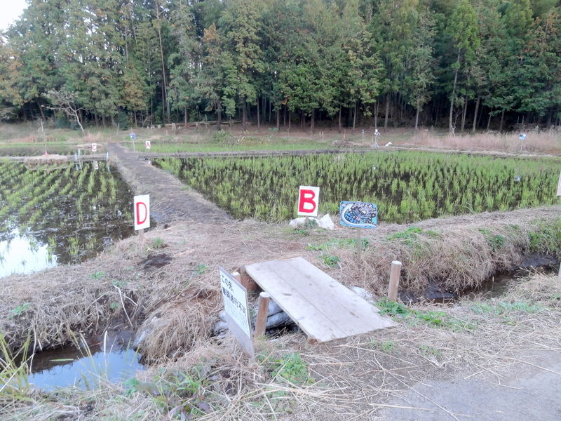 A~Iの田んぼには、田植え参加者により愛称がつけられているようです(『地域と水田が甦る水田再生』164頁、家の光協会、2006年)。A:ぶっこきA1号、B:ユビキ田ッス、C:穂Cー、D:風の谷の田んぼ、E:いい田んぼ、F:ほ田る、G:グレート田んぼ、H:でんでん太郎、I:愛ランド