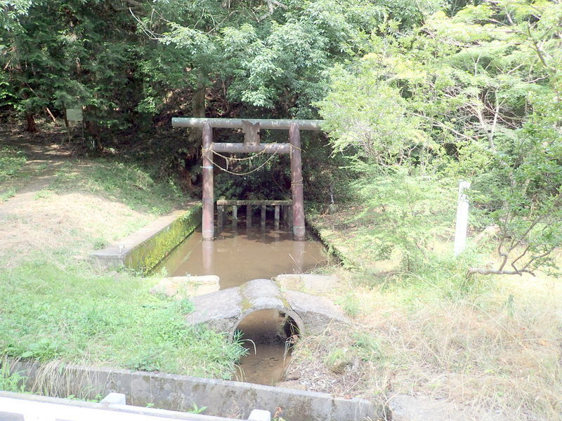 駐車場の脇に椎井池(しいいのいけ)があり鳥居の奥で水が湧いていました。池のほとりに夜刀神(やとのかみ)を退治した壬生連麻呂(みぶのむらじまろ)の小さなブロンズ像(宮路久子さん製作)が建っています。